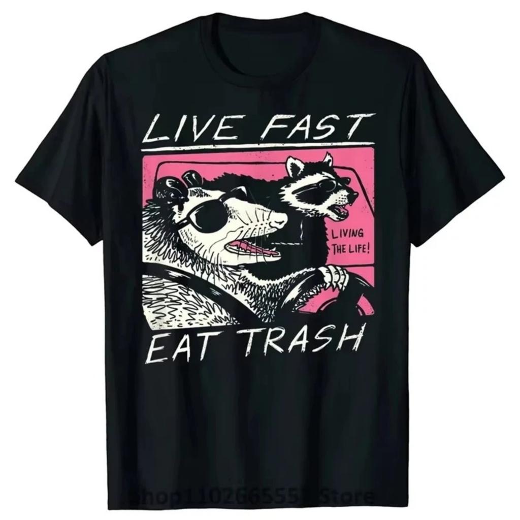 Live Fast Eat Trash T Shirt Funny Cartoon Raccoon TShirt Women Camisas Men Hombre Female Casual Top Tee Harajuku Unisex T-shirt