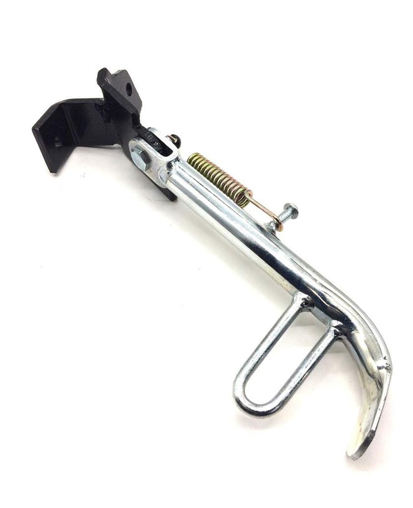 This is an aftermarket side stand for the Suzuki Address V100, CE11A, CE13A, AG100 scooter. Compatible models: Suzuki Address V100, CE11A, CE13A, AG100, etc. Color: Silver Installation Instructions: Remove the side cover under the footrest to reveal two mounting nuts. Securely attach the two bolts to avoid contact with wires.