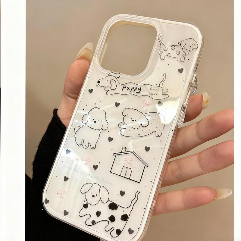 Korean Ins Creative White Cute Spotted Puppy Phone Case For iPhone 17 16 15 14 13 12 11Pro Max 17Air Mini 78Plus Sweet Y2K Cover