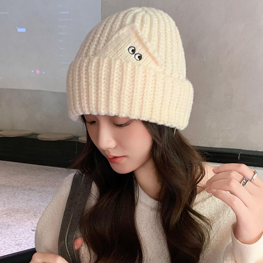 New Style Woolen Hat for Women In Autumn and Winter Warm Ear Protection Hat Fashionable and Versatile Face Showing Small Knitted Hat Cold Eye Hat