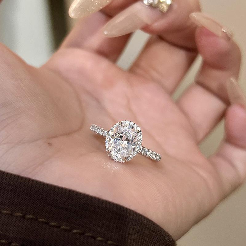 Silver Full Diamond Oval Ring Exquisite New In Light Luxury Fashion Exquisite Engagement Rings for Women Wedding
