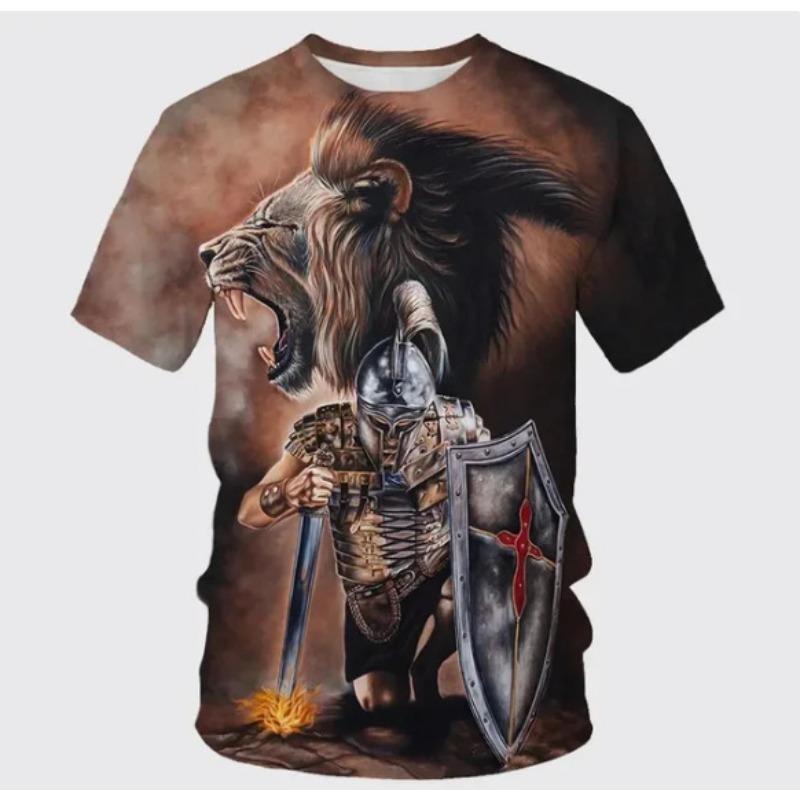 Men's 3D Printed T-Shirt Knight Pattern Print Short Sleeve O-Neck Pullover Casual Top
