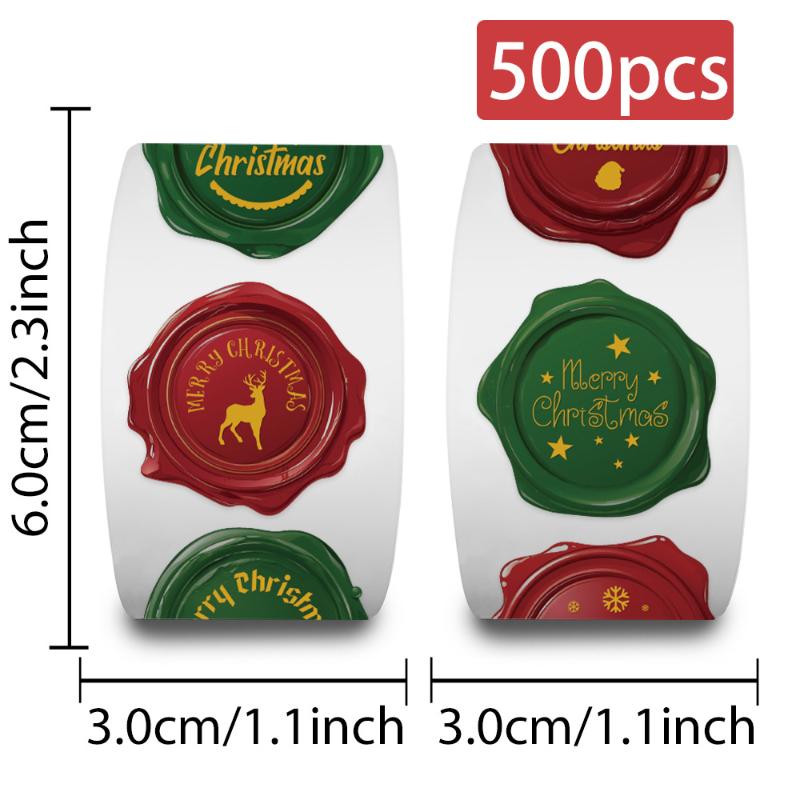 500Pcs/set Merry Christmas Stickers 1 Inch Round Christmas Tags Stickers For Kids Gift Baking Package Envelope Stationery Decor