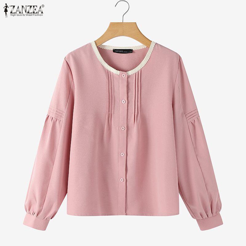 ZANZEA Women Casual Round Neck Solid Color Long Sleeve Blouse