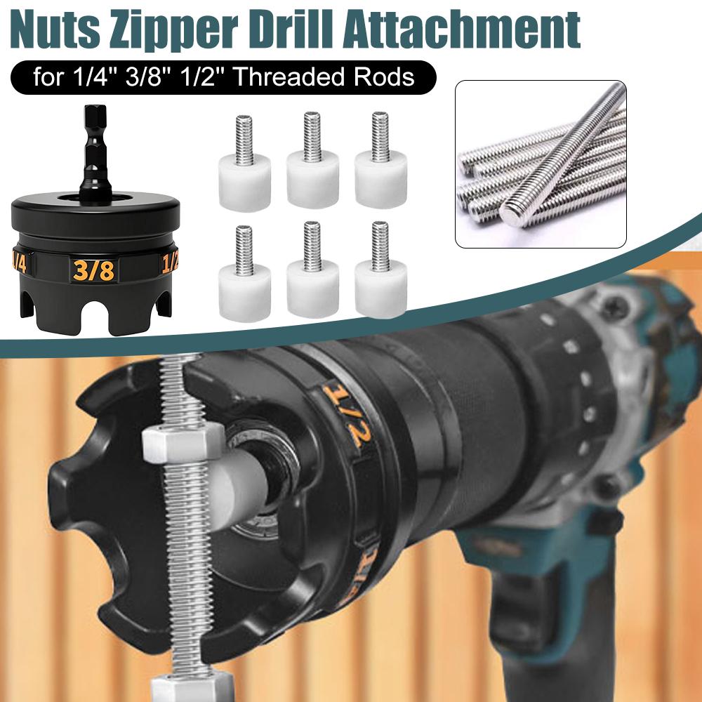 Fast Nut Bolt Removal Nuts Zipper Drill Attachment for 1/4in 3/8in 1/2in Threaded Rods Nuts Spinning Drill Bolt Extractor Tool