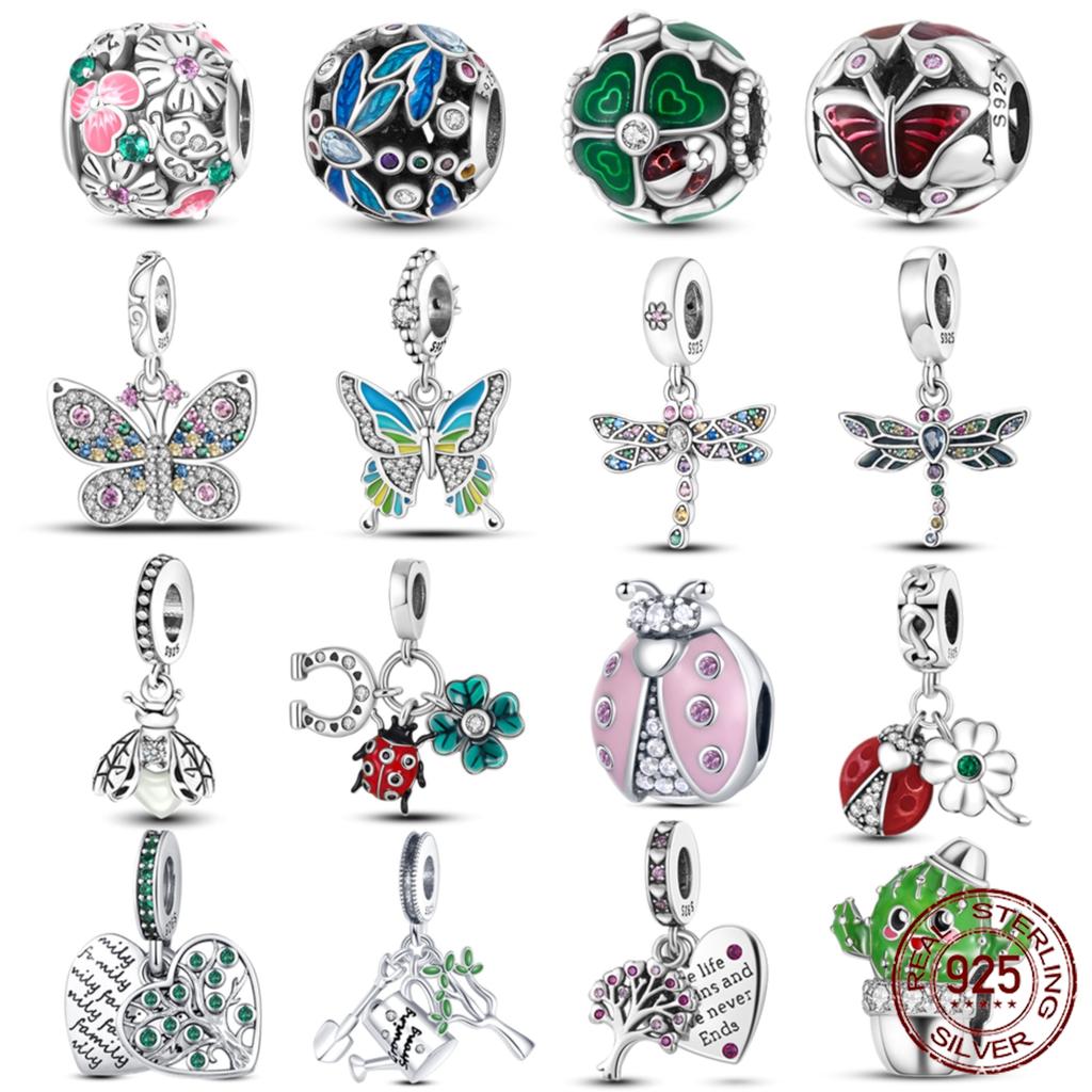 Plants Insects Charms Bead Copper Butterfly Dragonfly Cactus Clover Dangle Pendant Fit Pandora Bracelet Diy Jewelry