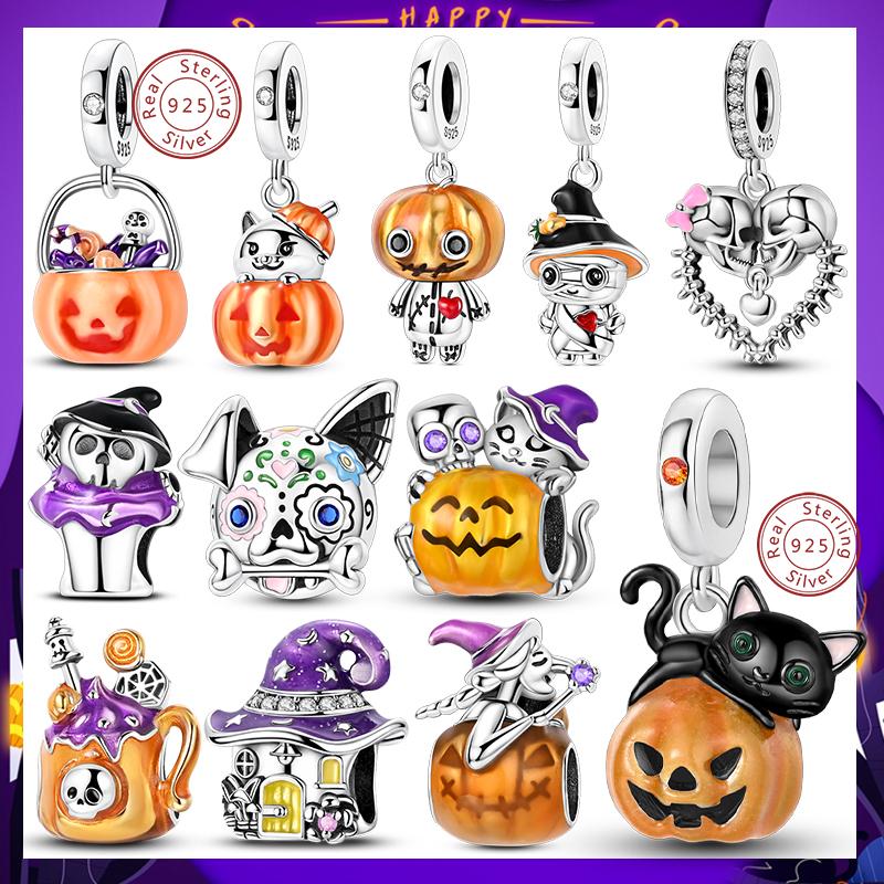 Original Copper Halloween Charms Beads Pendant Pumpkin Witch Doll Skull Candy Charm Fit Bracelet Diy Jewelry Gift