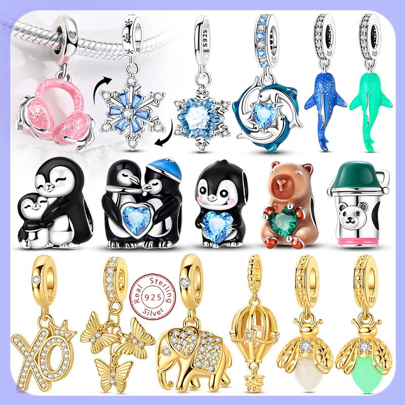 Original Charms Bead Pendent Copper Sparkling Snowflake Penguin Dolphin Charms Fit Bracelet Woman Jewelry Gift
