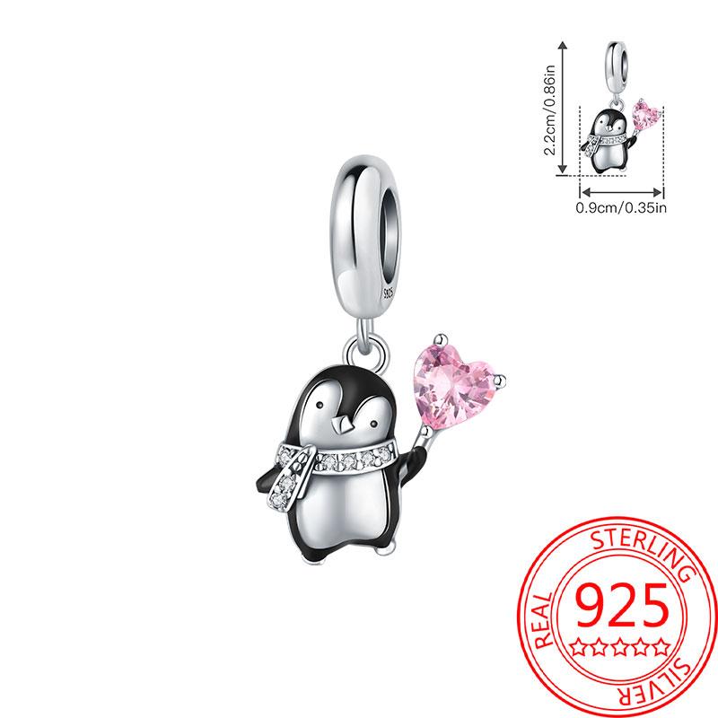Beads Copper Charms Original Pink Heart Penguin Pendant Beads Fit Bracelet Jewelry Diy Women Fine Gift Accessory