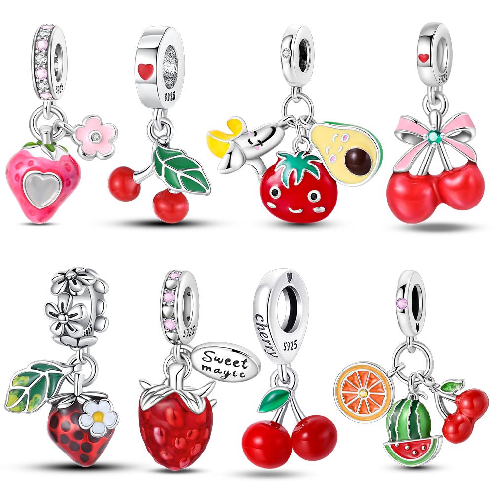 Strawberry Cherry Apple Avocado Fruit Charms Pendants Bead Fit Diybracelet Originalcopper Birthday Jewelry Fine Gift