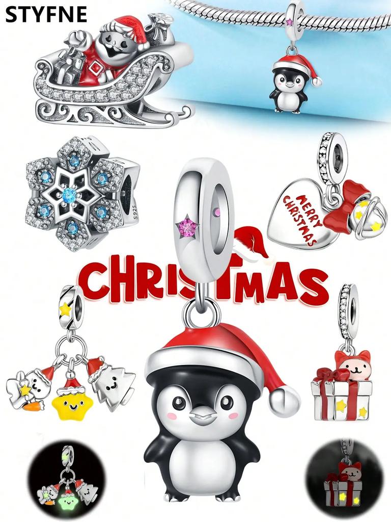 Copper Plated Original Charms Christmas Snowflake Penguin Beads Fit Bracelet Women'S Jewelry Gift