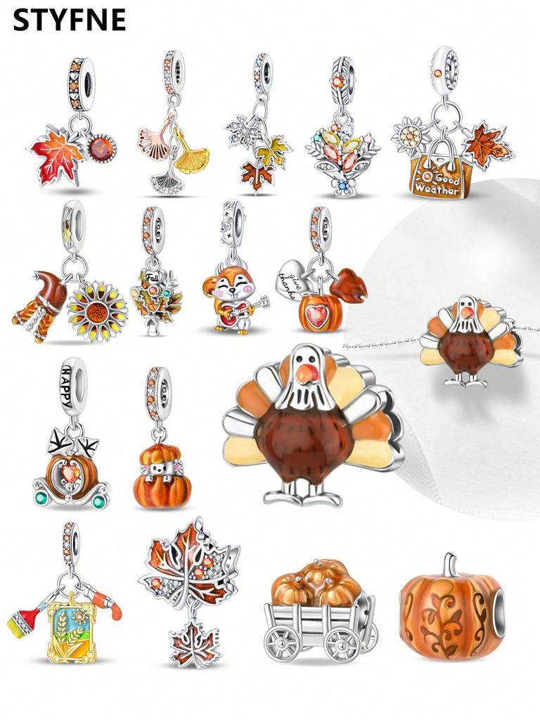 Autumn Pumpkin Squirrel Peacock Beads Charm Copper Plated Fit Charms Copperoriginal Bracelet For Jewelry Making Diy Charm