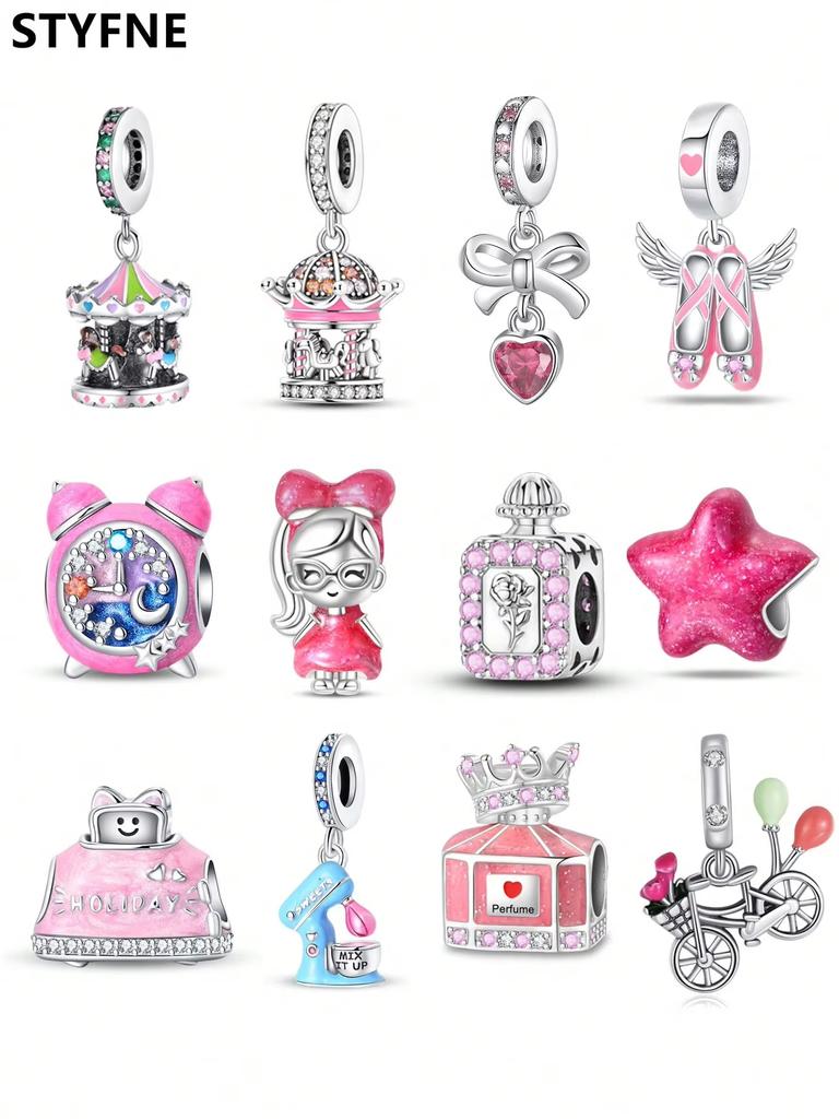 Pink Carousel Alarm Clock Beads Charm Copper Plated Fit Charms Copperoriginal Bracelet For Jewelry Making Diy Charm