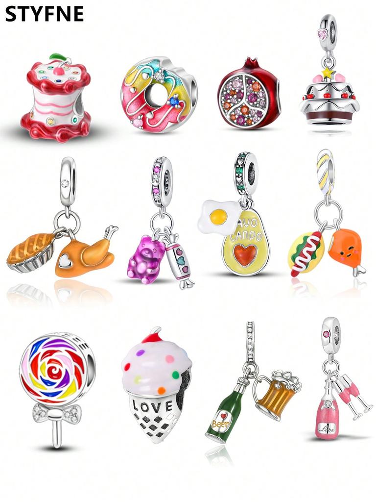 Charms Plata Copper Colors Fruit Dessert Cherry Cake Beads Charm Pendant For Original Bracelet For Women Diy Jewelry Love Gift