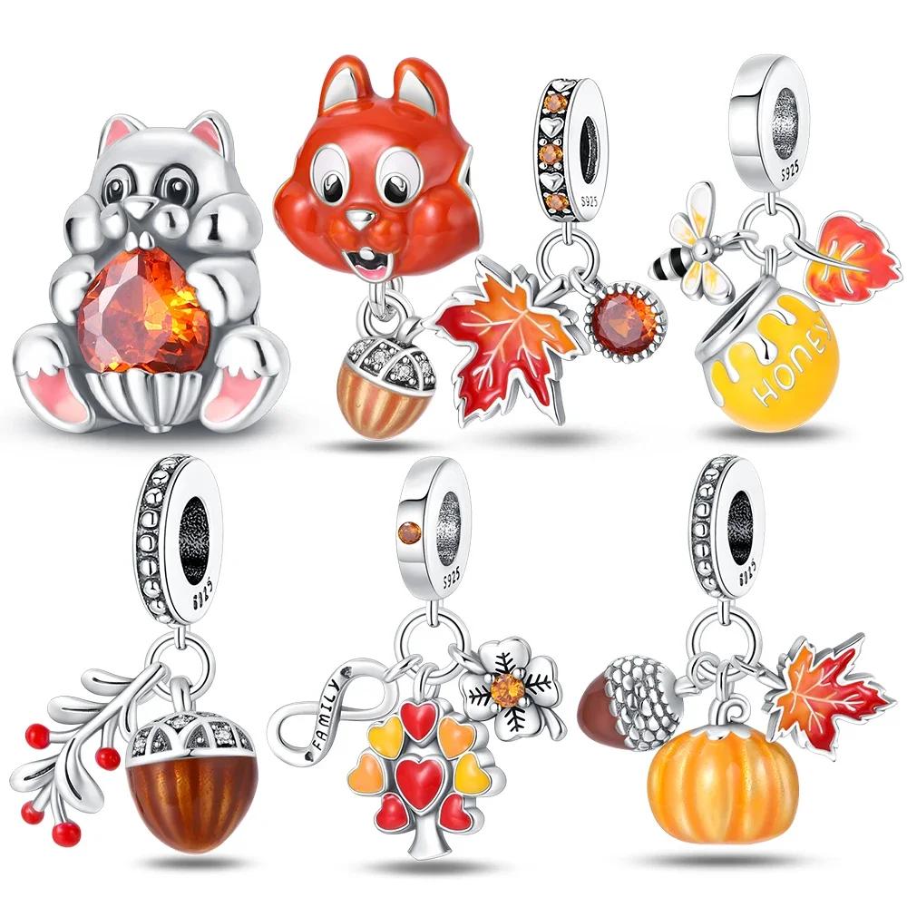 Copperpendant Autumn Style Series Pine Cone Squirrel Tree Of Life Fit Women'S Bracelet Making Jewelry Gift