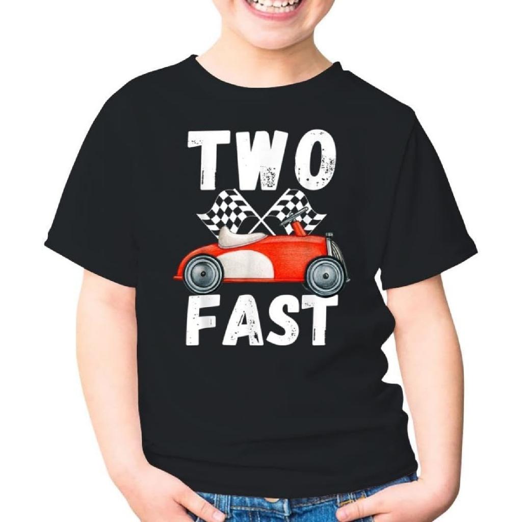 Two Fast 2 Curious Racing 2nd Birthday Race Car Pit Crew 2 Years Old Toddler Shirt Gift Boys Girls Youth T-Shirt (Black;3T)