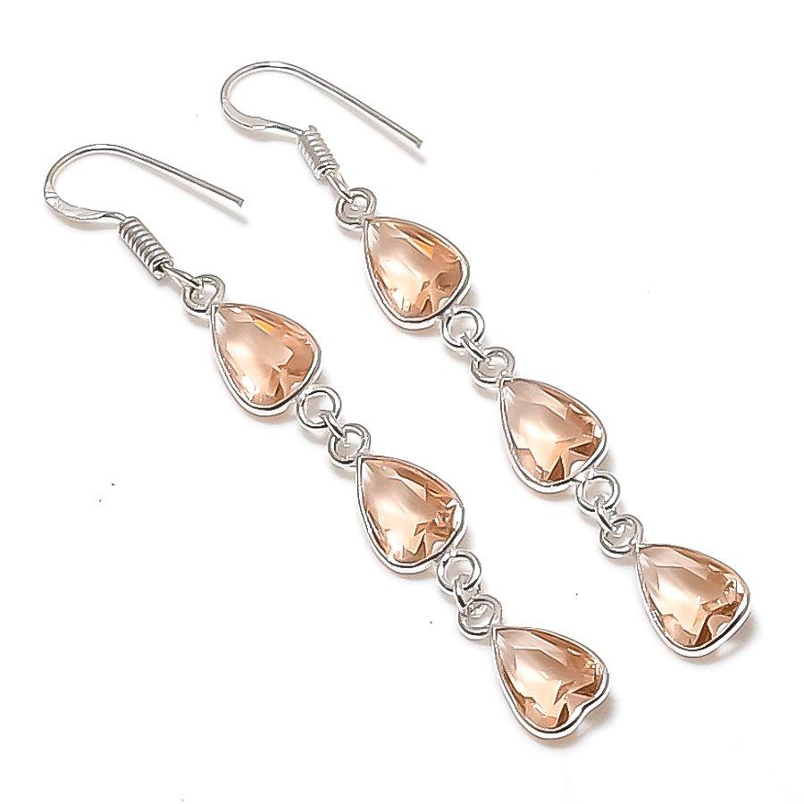 Natural Morganite Gemstone 925 Sterling Silver Jewelry Earring 2.64" AEE-11261