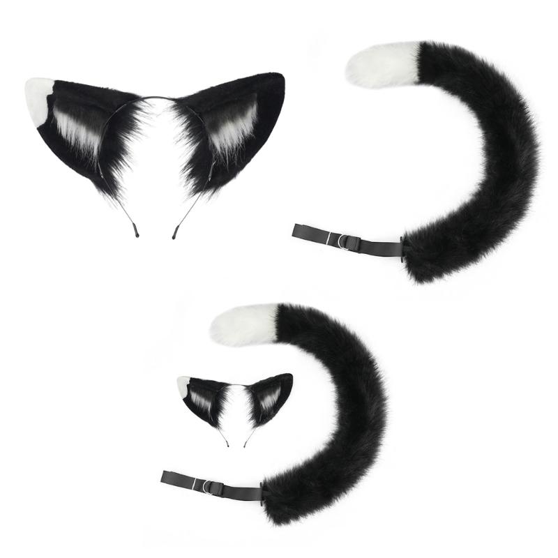 Animal Cosplay Costume Fauxs Furs Wolf Cats Foxes Tail and Cats Ears Headbands Halloween Party Costume Accessories