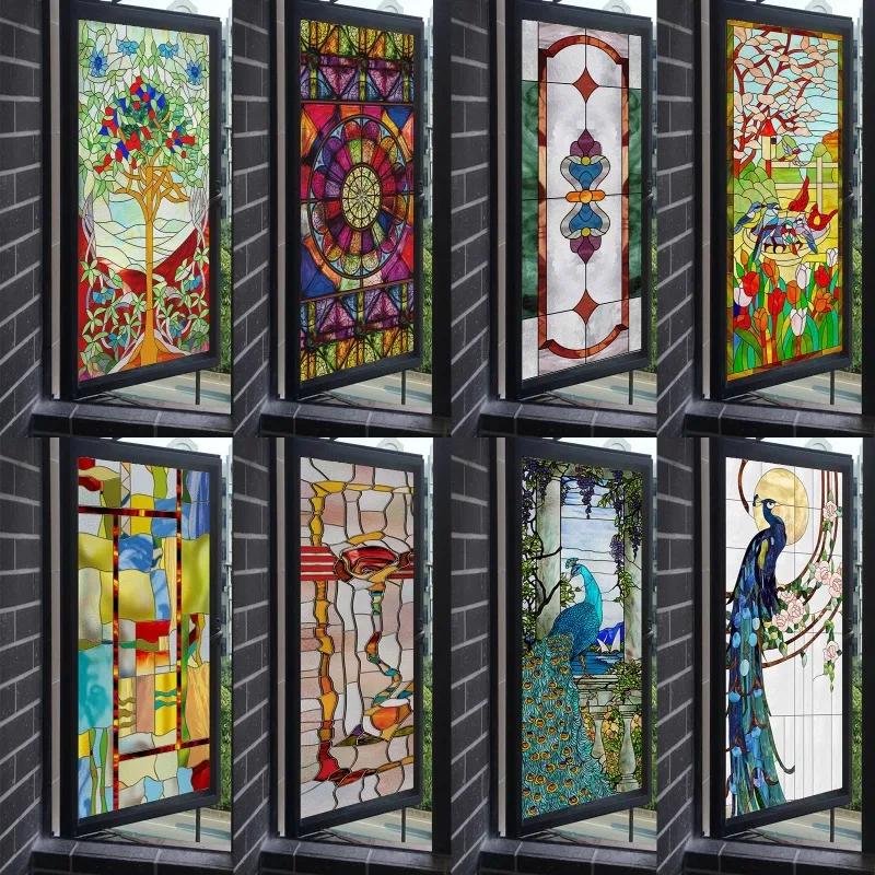 European Vintage Glass Paste Custom Toilet Opaque Painting Tiffany Imitation Art Film Electrostatic Scrub Window Paper