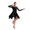 Women's Latin Dance Dress with Sequins, Long Sleeves, and Fringe for Performance