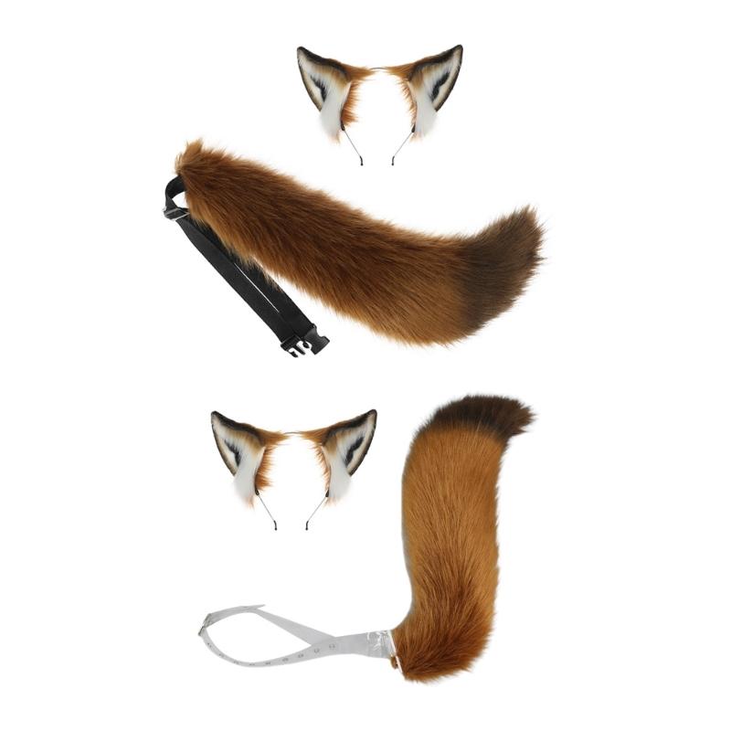 Fox Ears and Tail Set Furry Fox Ears Headband with Tail Halloween Cosplay Party Fox Costume Accessories for Kids-Adults