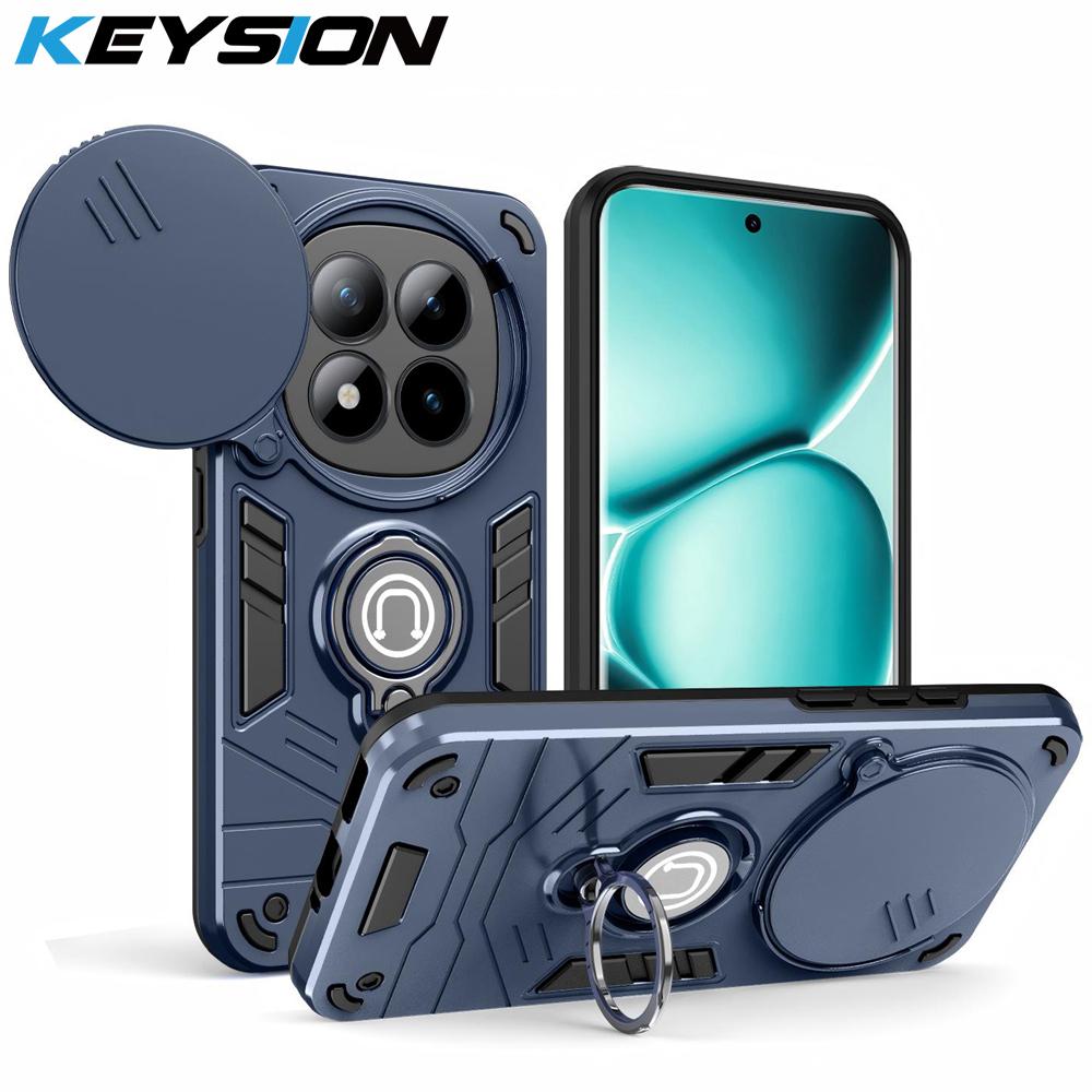 KEYSION Shockproof Armor Ring Stand Case for Redmi Note 15 Pro+ 5G Slide Camera Lens Protection Phone Cover for Redmi Note 15 4G 5G