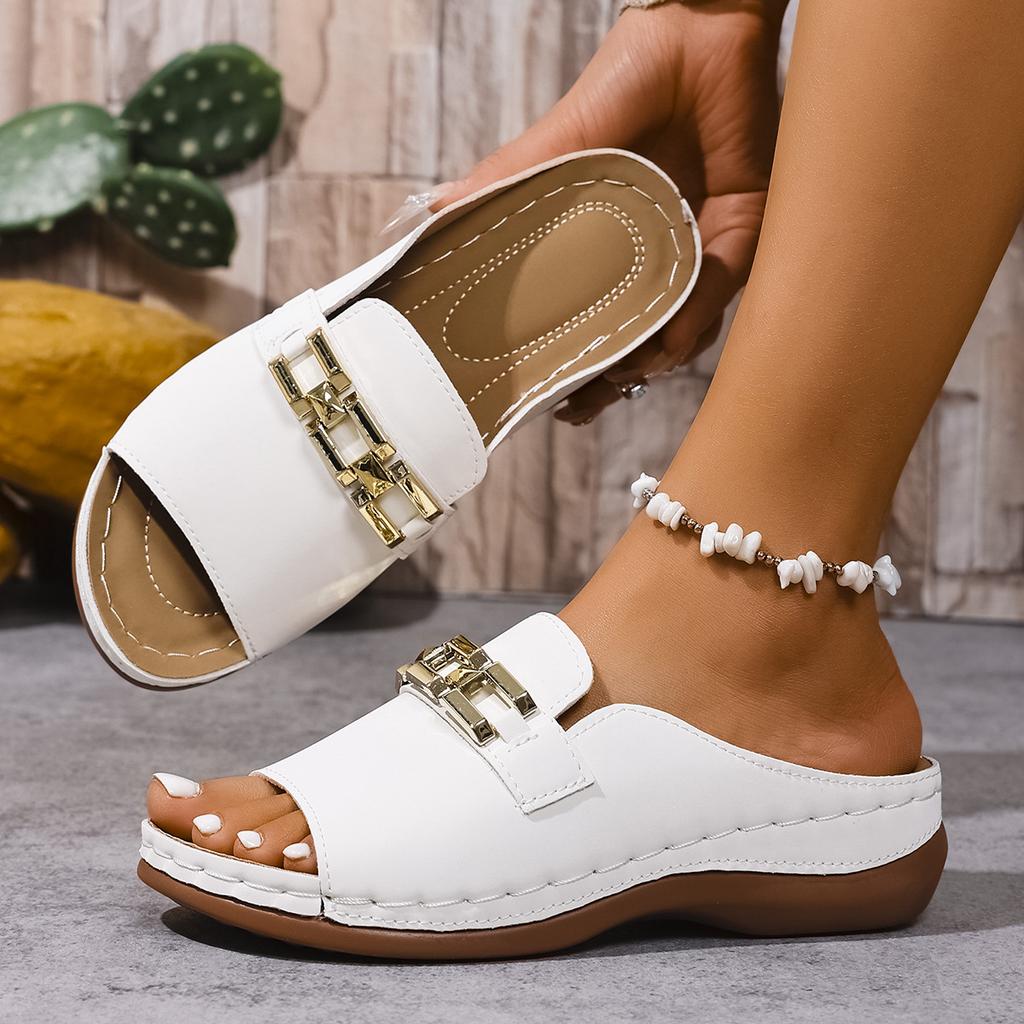 Women's Wedge Sandals. Metal Chain Detail. Casual Open-toe Platform Shoes, Summer Beach Footwear, Women Shoes