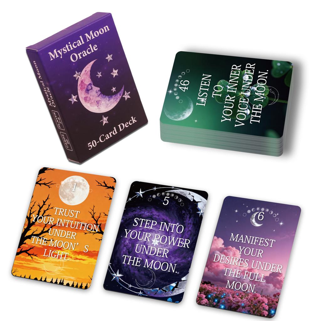 Mystical Moon Oracle Deck - 50 Cards 9*6.7cm for Spiritual Guidance, Manifestation & Moon Phase Rituals