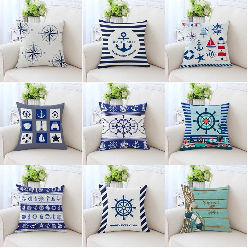 Home Decor Nautical Themed Pillow Covers with Sea Symbols Pattern Cushion Cover Suitable for Sofa Bedroom Car Pillow Cover