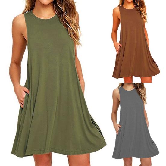 Equipped with a round neck, solid color and sleeveless design, it can better show your charming figure.