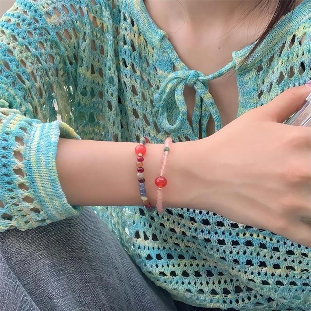 Women's Summer Natural Stone Point Color Bead Bracelet