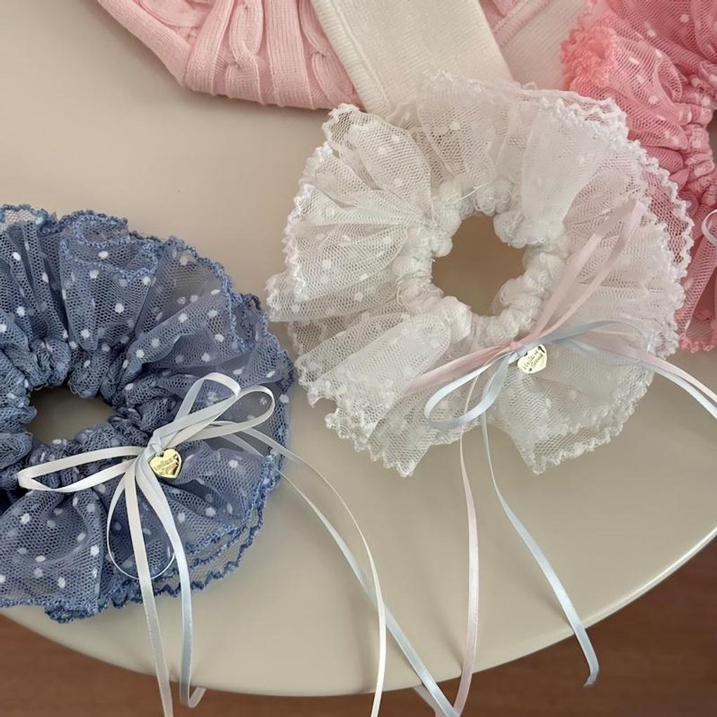 Women's Chiffon Dot Lace Long Ribbon Gopchang Scrunchie