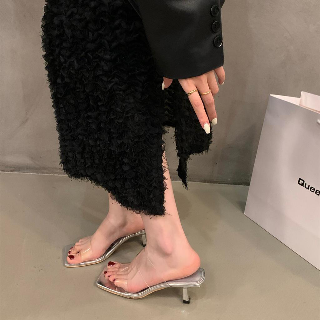 French Temperament Transparent with Cool Slippers Fairy Shoes Summer Wear High Heels Sandals