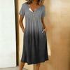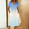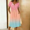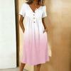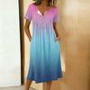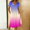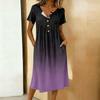Women's Fashion Gradient Color Printed Round Neck Short Sleeve Button Neck Medium Length Casual Dress