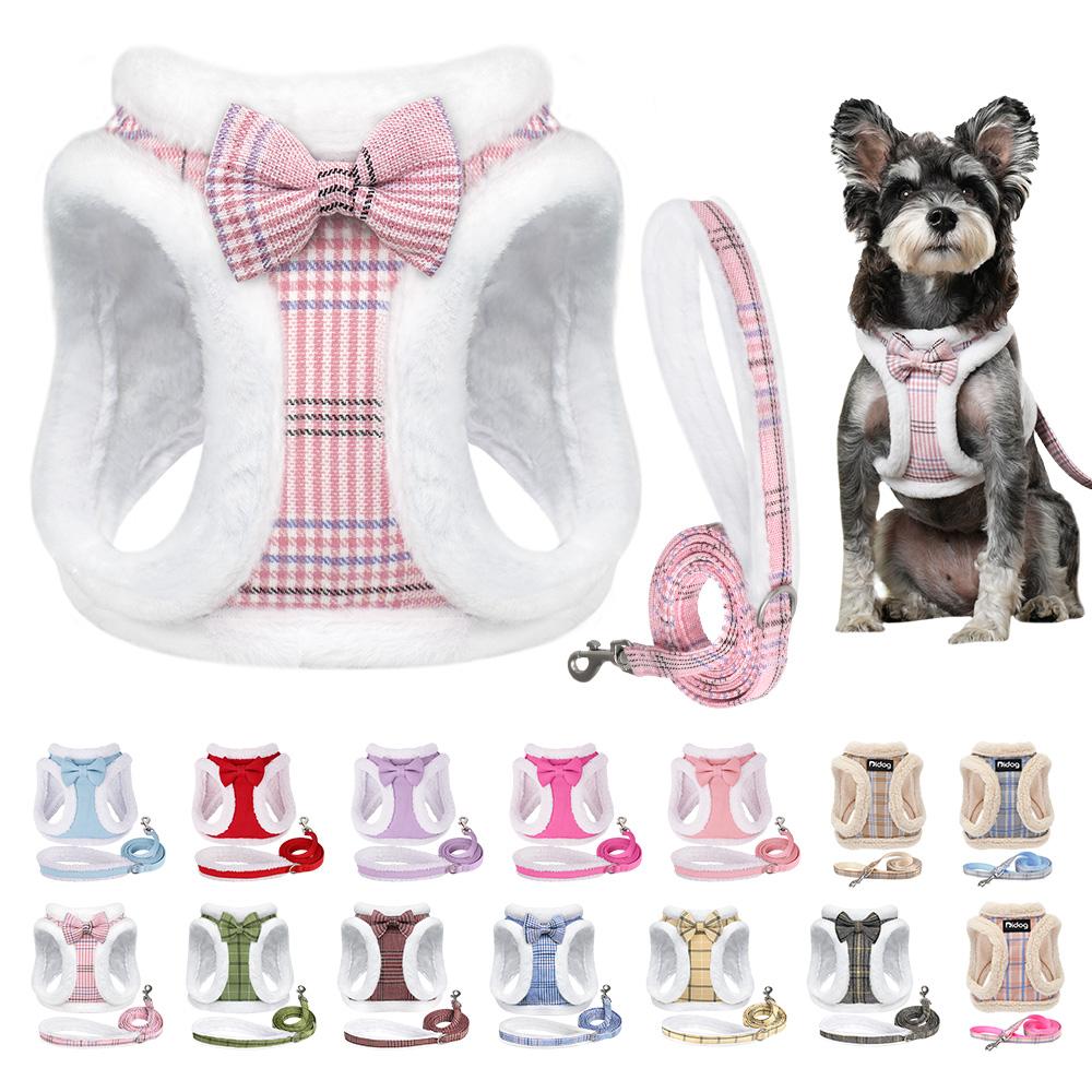 Winter Warm Pet Dog Harness Leash Set Soft Fur Padded Puppy Cat Harness Vest Thick Dogs Vest For Small Medium Dogs Chihuahua Pug