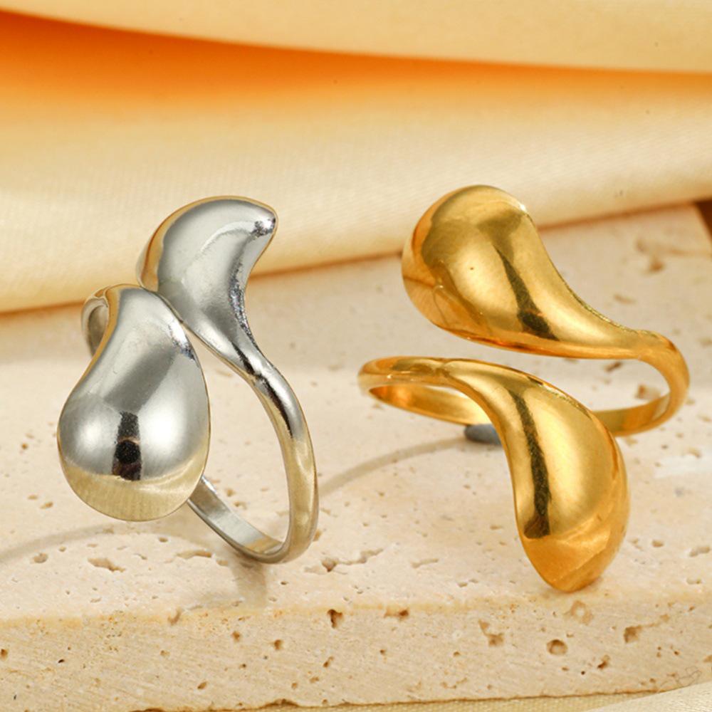 Elegant Adjustable Stainless Steel Geometric Finger Ring for Women - Non-Fading Titanium Steel Design