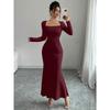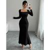 Elegant Long Sleeve Fish Tail Dress Women's Fashionable Slim Fit Sexy Gown Full Length Ankle Skirt Regular Waistline