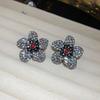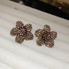Elegant Diamond-Studded Flower Earrings: Silver Needle Retro Style for High-End Fashion