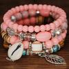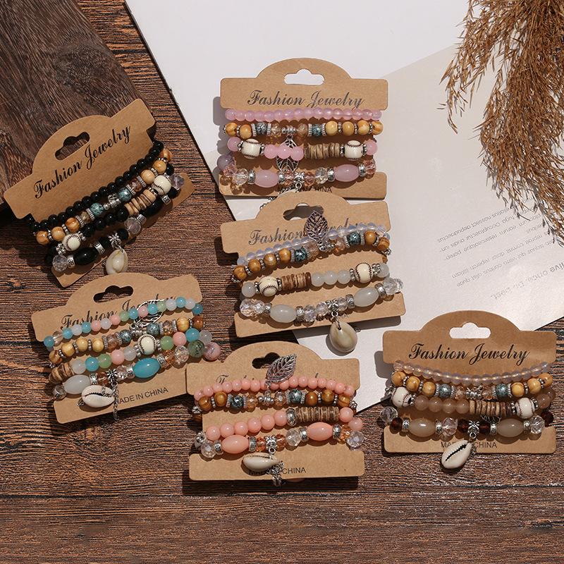 Bohemian Multi-Layer Shell Bracelet, Leaf Pendant, Crystal Resin Bracelet, Personalized Rice Bead Bracelet Generation