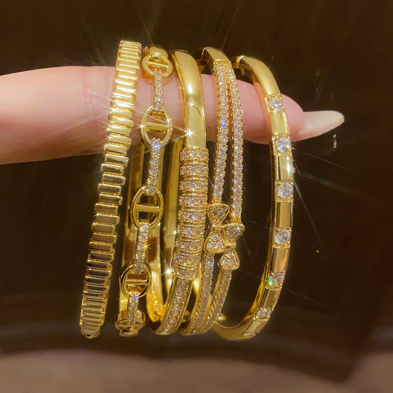 18K Gold Plated Zircon Bow Double Layer Bracelet - Korean Style Versatile Bangle with High-End Niche Design