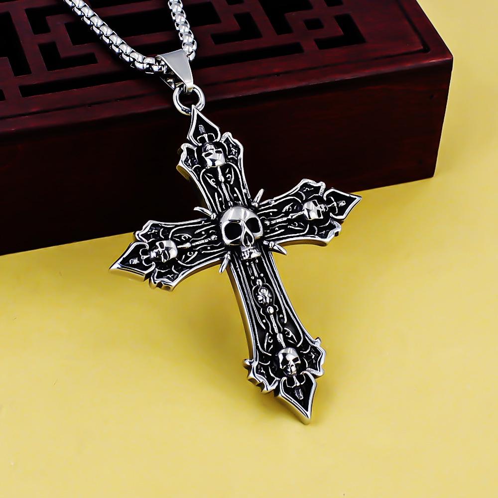 Retro Titanium Steel Cross Pendant Necklace - Men's Hip Hop Style Jewelry