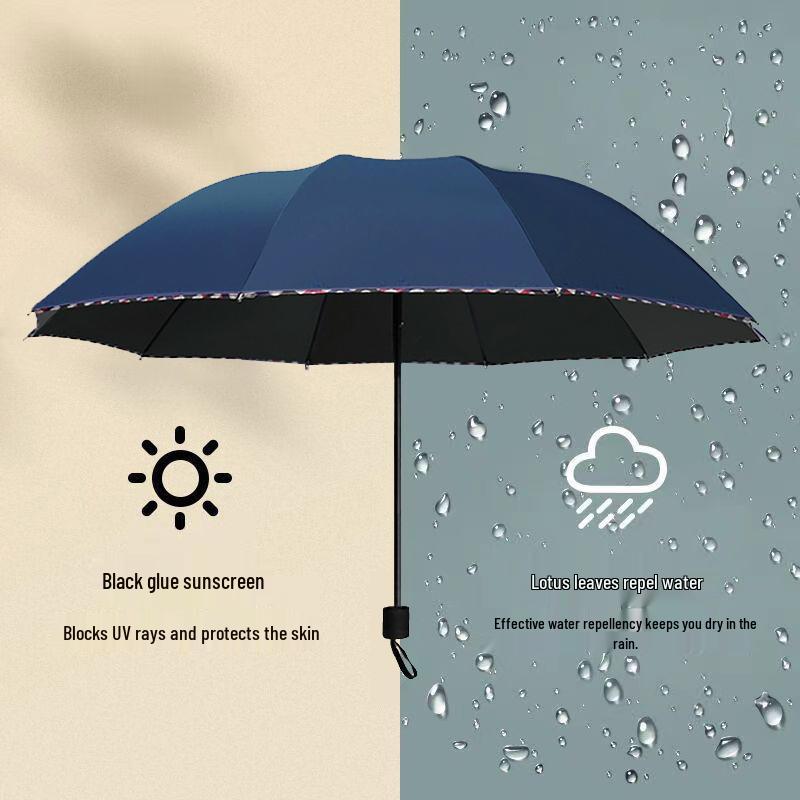 Extra Large Dual-Use Umbrella for Men and Women: Manual Three-Fold Design with Reinforced Black Glue for Rain or Shine Protection.