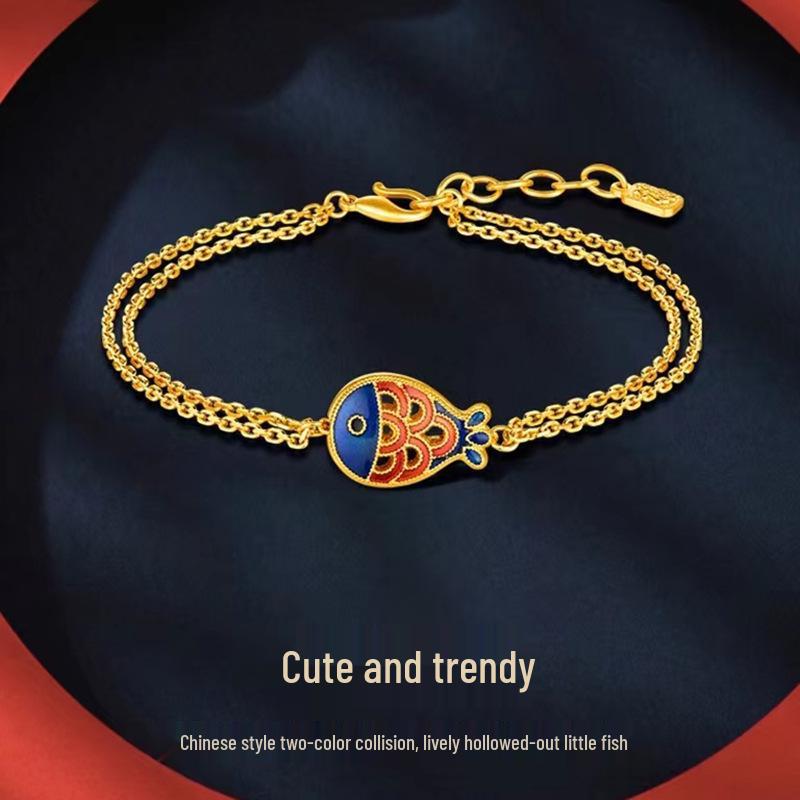 Gold-Plated Brass Good Luck Fish Bracelet, Vietnamese Sand Gold, Couples Style, Valentine's Day Gift for Girlfriend.