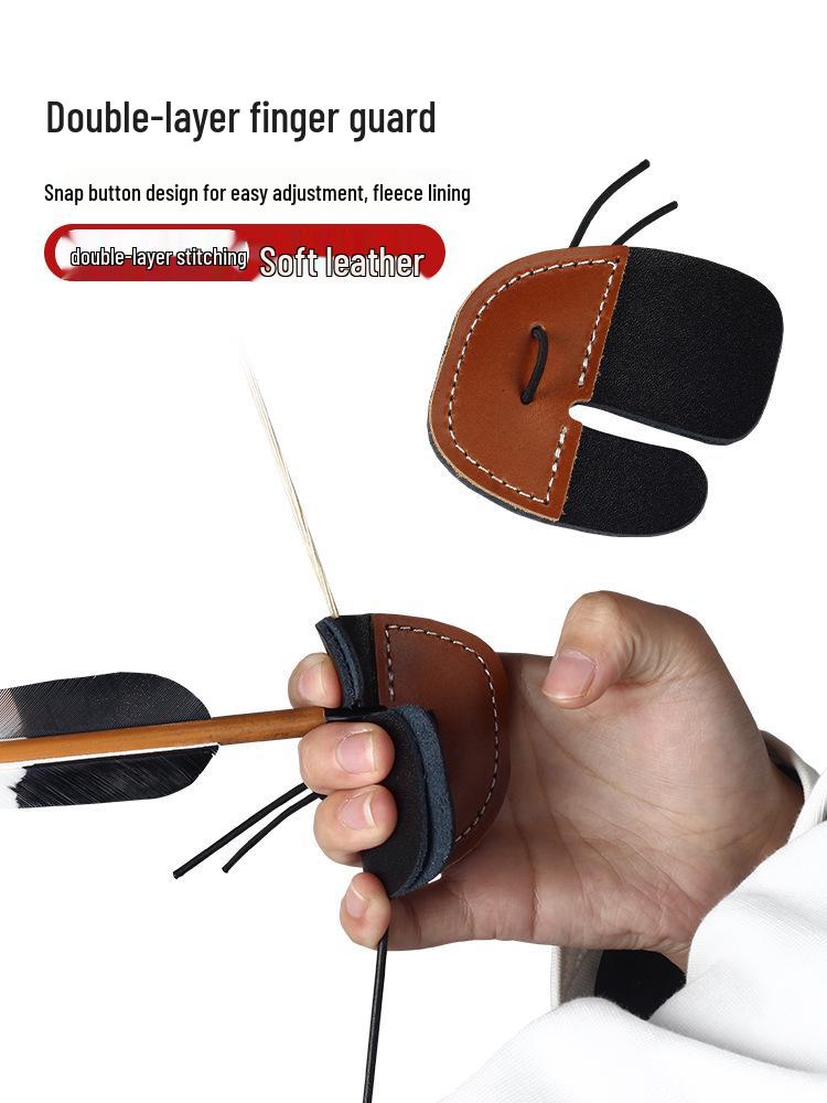 Adjustable Double Layer Leather Archery Finger Guard for Traditional Recurve Bows - Outdoor Hunting & Competitive Use
