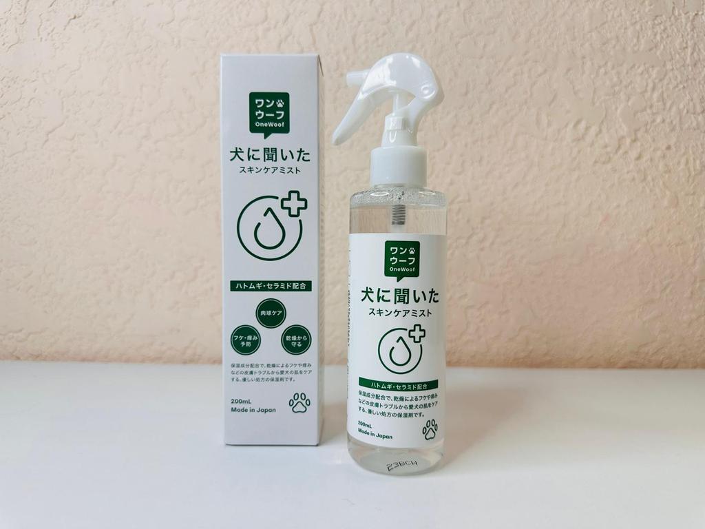 OneWoof's "Additive-Free, Fragrance-Free Skincare Mist Heard from Dogs" is a low-irritation, highly moisturizing skincare mist made in Japan with peace of mind and safety, developed under the supervision of veterinarians.