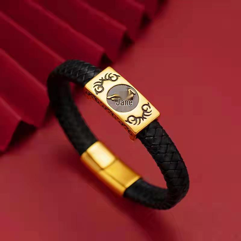 Ox-Themed Leather Cord Bracelet: Vietnamese Sand Gold Ethnic Style for Men's Fashion - Instant Success Charms
