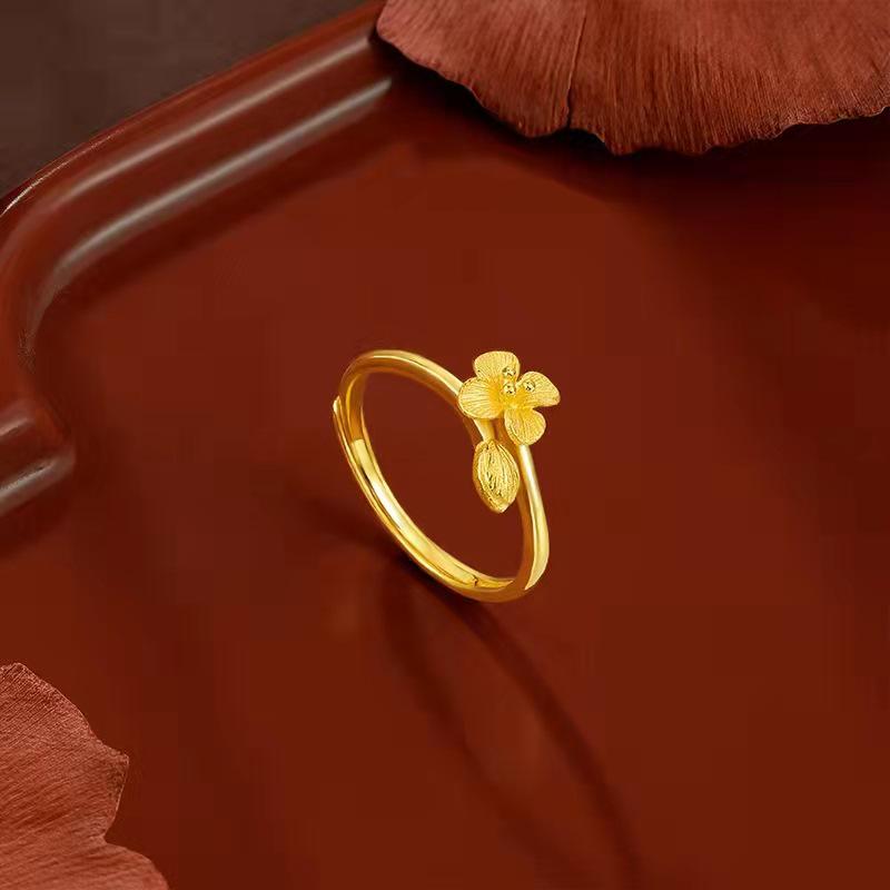 Holy Flower Brass Gold-Plated Adjustable Open Ring for Women