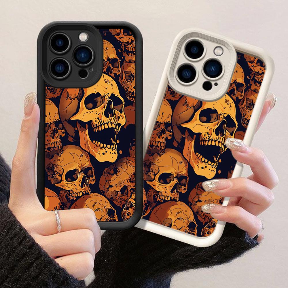 JT228 Eerie Overlapping Skull for iPhone 17 16 15 14 13 Pro Max Samsung S26 S25 Ultra A17 A16 A07 A56 A36 A26 Xiaomi 15T Redmi 15c 14C 13C Soft Case