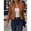 IHUASU Women's Vintage Casual Solid Color Print Autumn Winter Long Sleeve POLO Neck Jackets & Coats