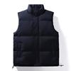 Stay warm and stylish this winter with this men's sleeveless vest. Crafted for a slim fit, it features a stand collar and a convenient zipper closure, offering both comfort and functionality. The vest is insulated with down cotton, making it perfect for chilly days, while the soft cotton material ensures comfort. Its solid color design adds a touch of modernity, making it a versatile addition to any winter wardrobe. Ideal for layering over your favorite outfits, this vest is a must-have for those seeking trendy, practical outerwear.